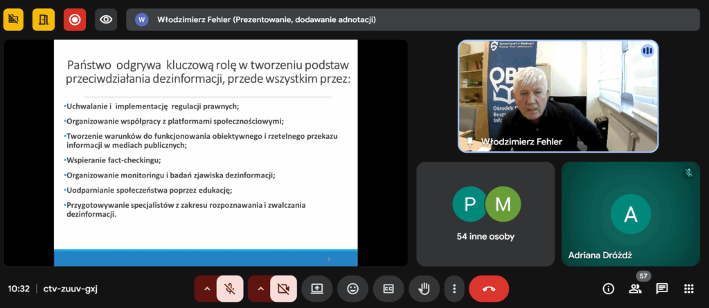 Przedstawiciele OBBI na I OKN z cyklu „Cyberbezpieczeństwo i dezinformacja w XXI wieku” pt. „Dezinformacja jako wyzwanie cywilizacyjne i zagrożenie bezpieczeństwa. Przeszłość, teraźniejszość, przyszłość”