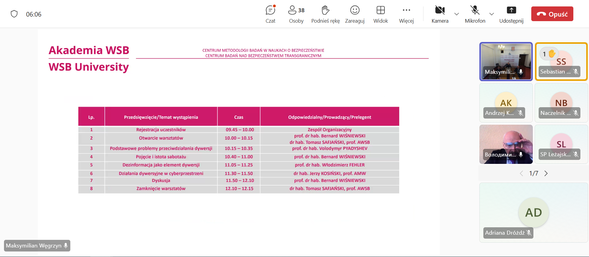 o Bezpieczeństwie Akademii WSB oraz Centrum Badań nad Bezpieczeństwem Transgranicznym Akademii WSB. Warsztaty odbyły się w formule hybrydowej,