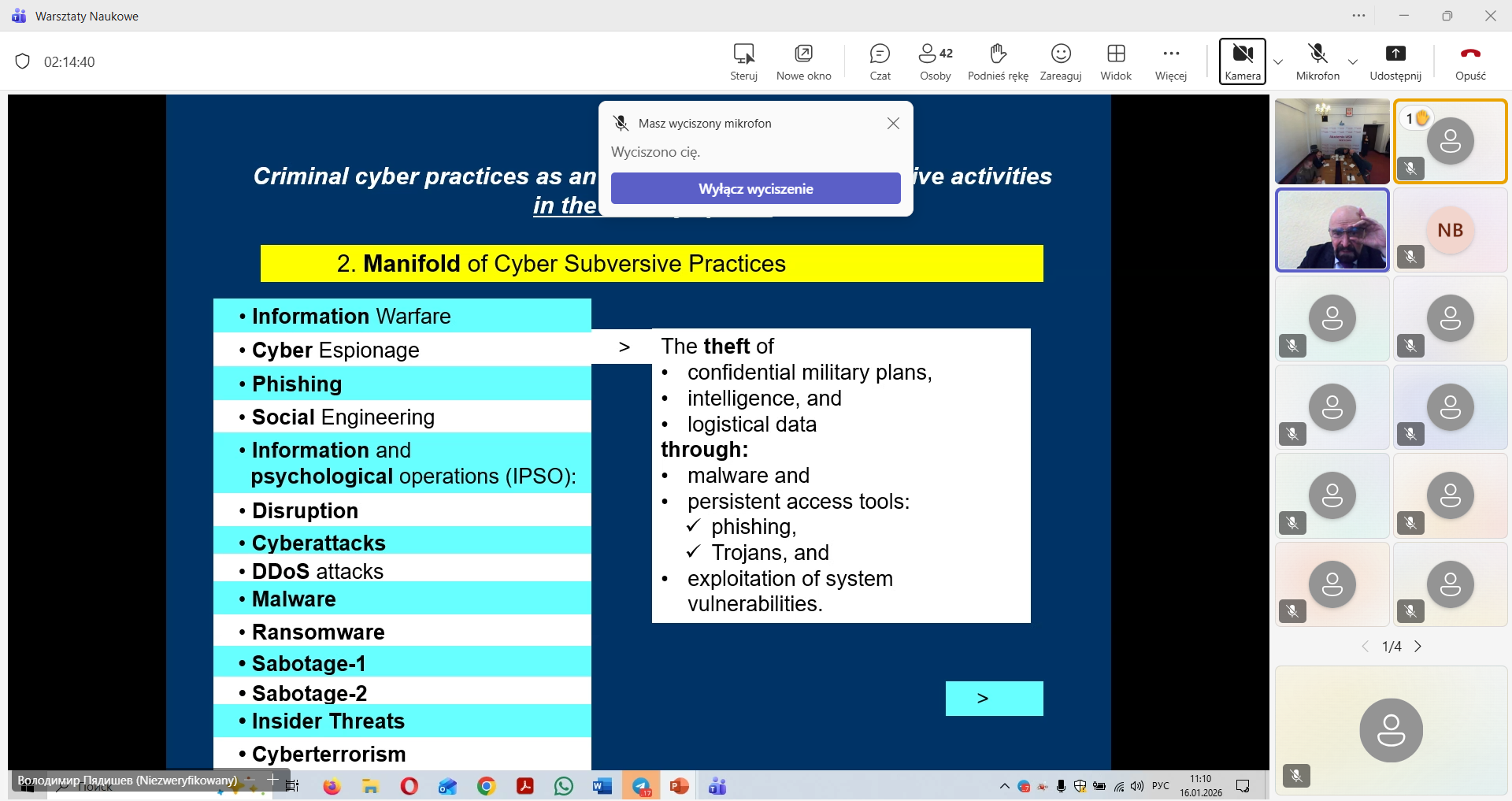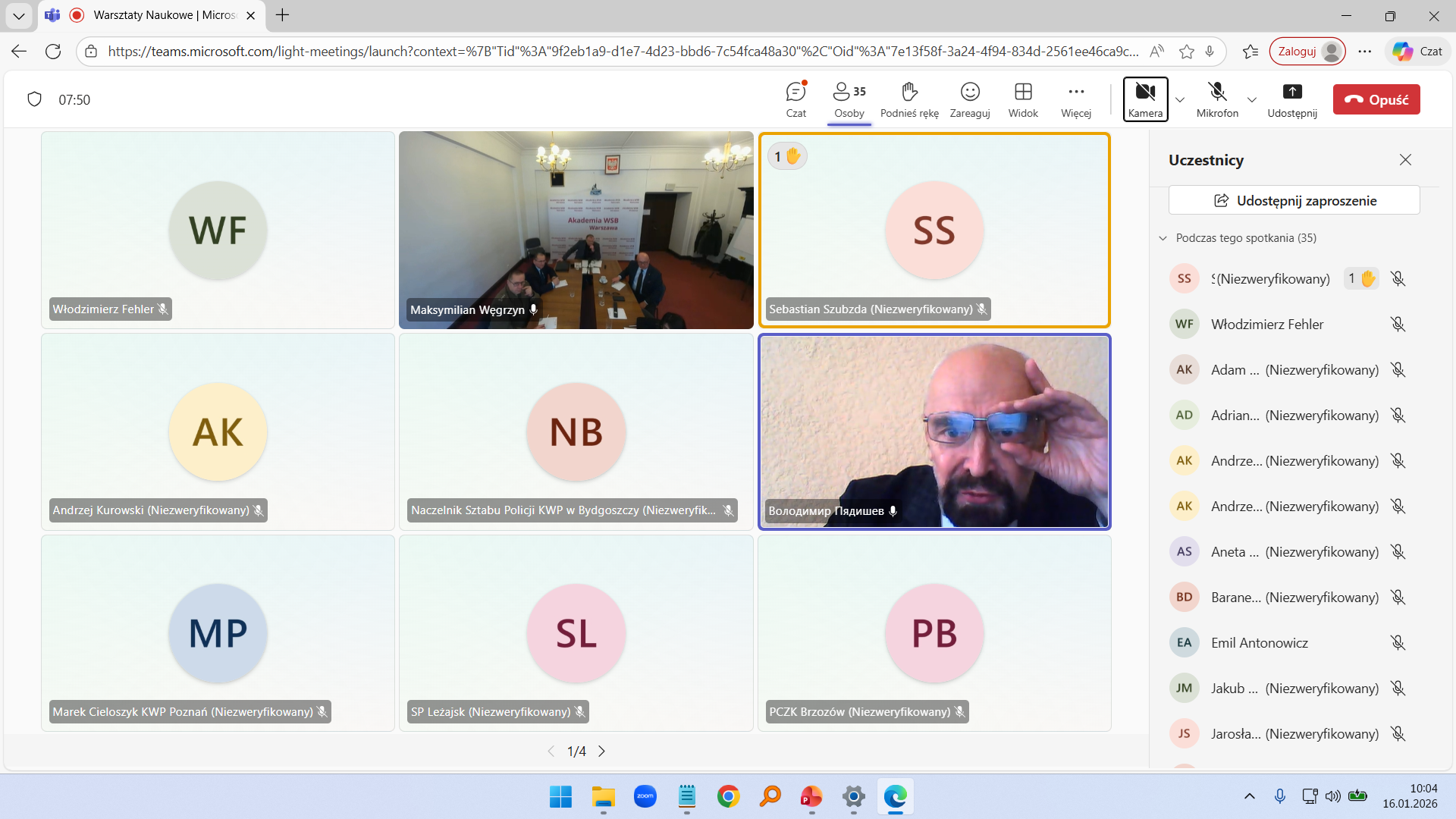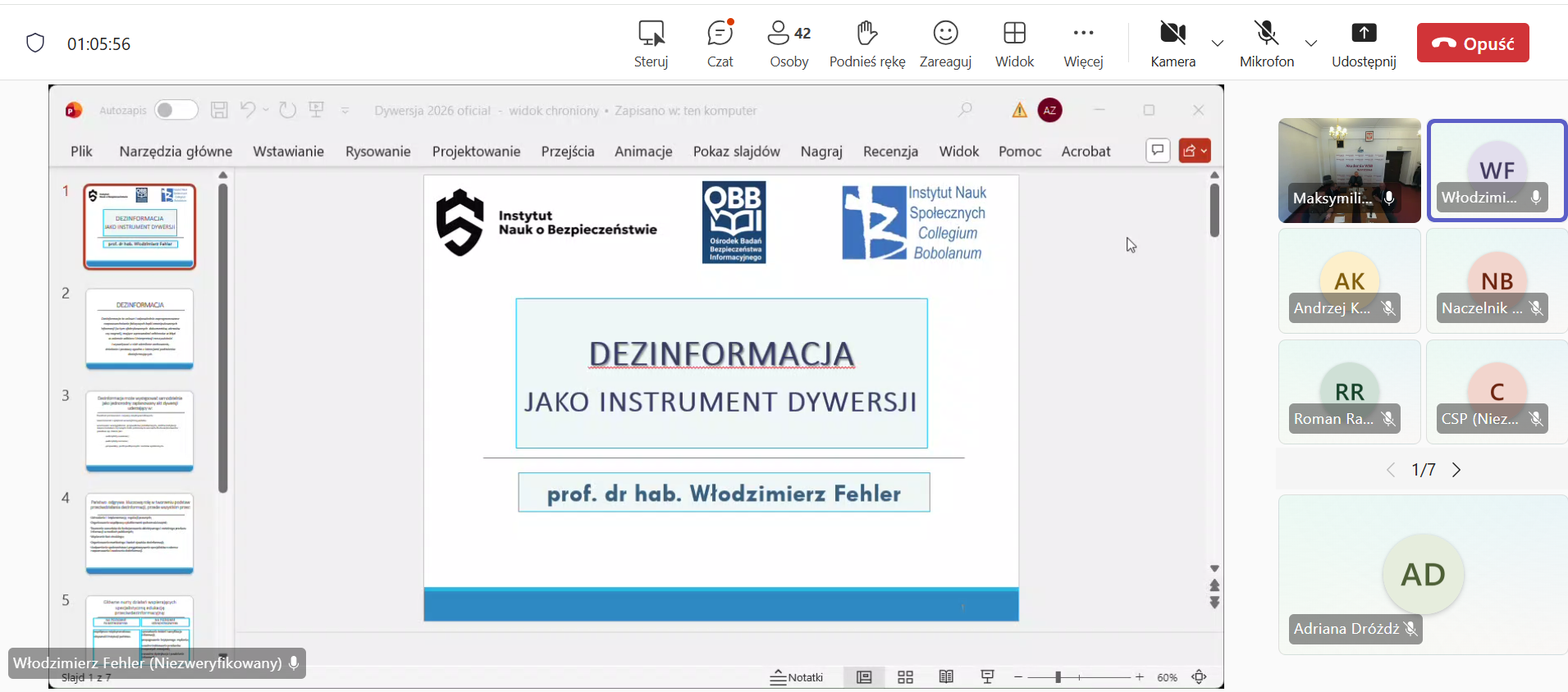 W dniu 16 stycznia 2026 r. prof. dr hab. Włodzimierz Fehler uczestniczył w II Warsztatach Naukowych na temat „Podstawowe problemy przeciwstawiania