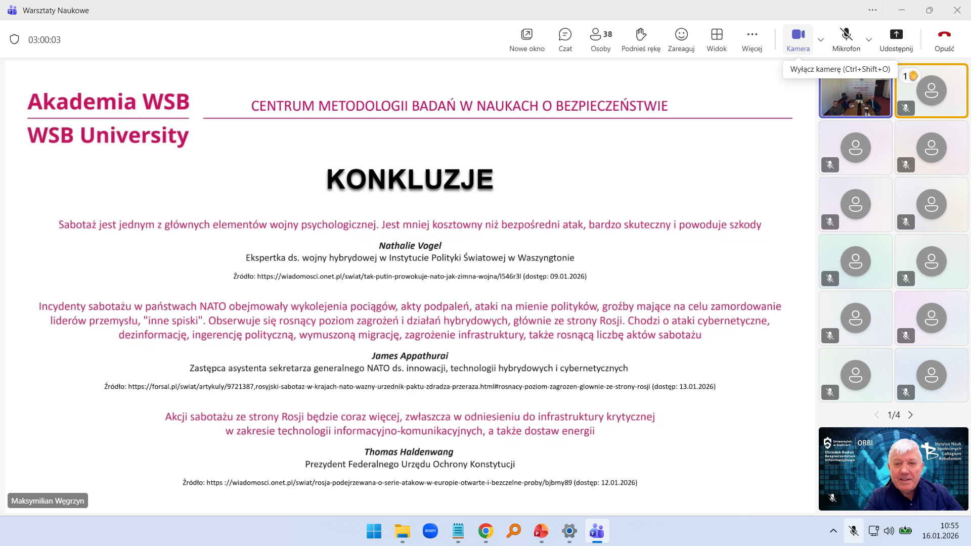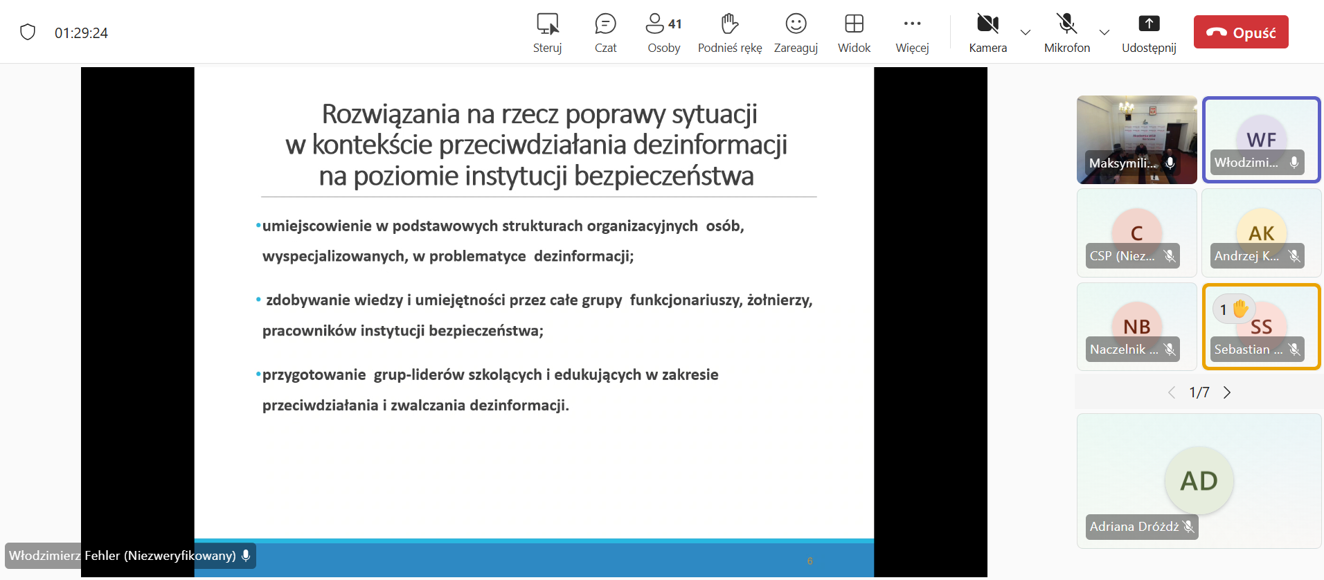 pt. „Dezinformacja jako instrument dywersji”, w którym przedstawił zastosowanie dezinformacji jako jednego z narzędzi współczesnych działań dywersyjnych. Wystąpienie dotyczyło istoty i specyfiki dezinformacji, jej miejsca w działaniach dywersyjnych, a także konsekwencji jej stosowania dla funkcjonowania państwa, instytucji publicznych i społeczeństwa.